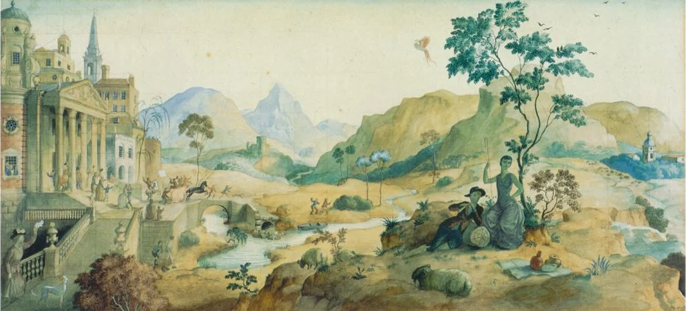 FOR THE THE EARL OF ANGLESEY IN PLAS NEWYDD, WALES HE PAINTED THE 58’ LONG MURAL ‘THE KINGDOM OF THE SEA’, INSPIRED BY 18TH CENTURY ITALIAN CAPRICCI OF THE SEA