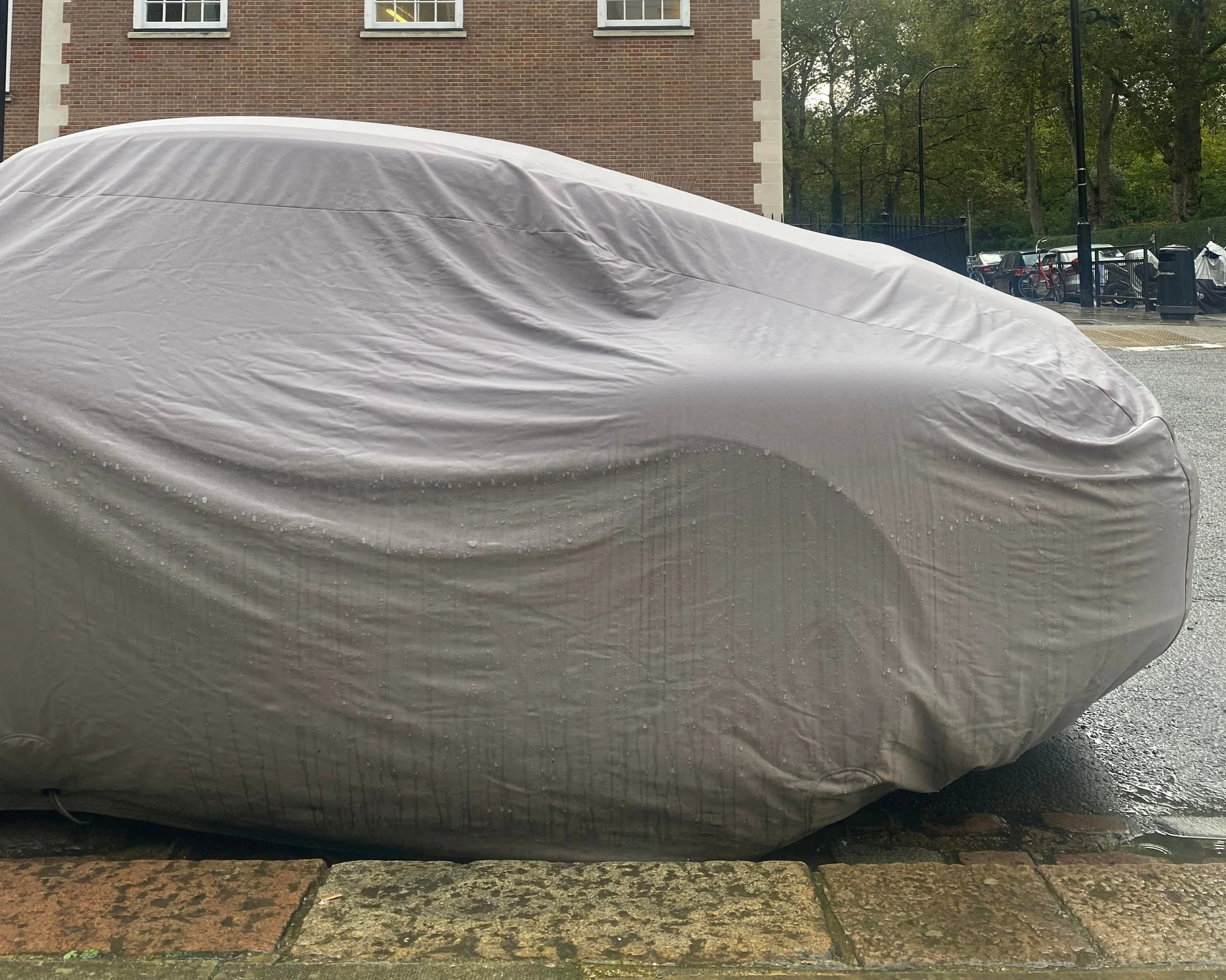 I keep looking at simple things, unwanted or not visible to everyone on a busy Saturday morning. I keep doing this convinced that it will help me to keep my mind open and not brainwashed by something which I am not aware of. My footprint in the wet changing room, grey walls, mat beiges and soft light blues. The cover of a car against a grey sky.
