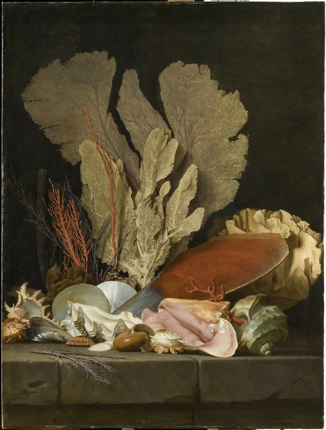 MARINE CORALS AND SHELLS, DATED 1769, OIL ON CANVAS 130X97 CM